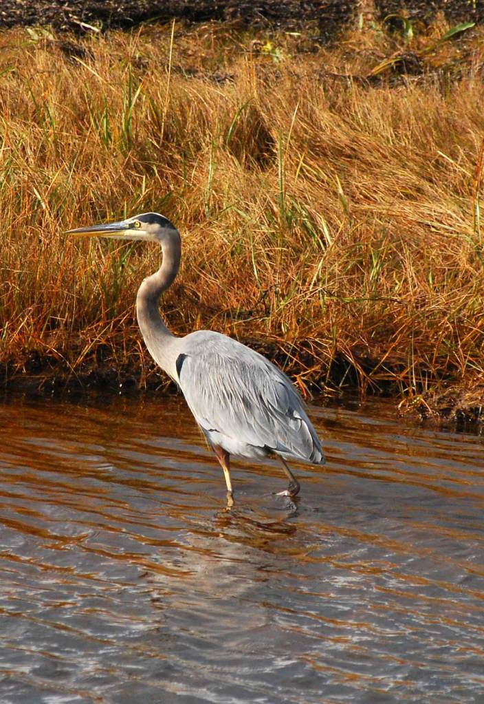 More tall grasses and less moss and lichens What both the bog and the salt marsh have in common are plentiful amounts of mosquitoes, although the salt marsh had more mosquitoes in my experience, and thankfully, in mid-October, they were overall not too bad. One thing that the salt marsh ecosystem had that the bog didn’t was a wide variety of birds. The close proximity to the sea made it a nice, sheltered resting spot for a variety of water birds, such as the Great Blue Heron.